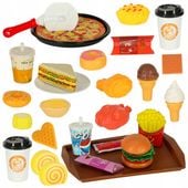 Ten wyjątkowy zestaw 56 elementów zabawkowego jedzenia i akcesoriów kuchennych zapewnia niezliczone godziny kreatywnej zabawy. Realistyczne miniaturowe przekąski jak pizza, tosty, frytki, lody i słodycze wraz z kompletnym zestawem sztućców, talerzy i kubków umożliwiają dziecku wcielenie się w rolę kucharza, kelnerki czy sprzedawcy w supermarkecie.