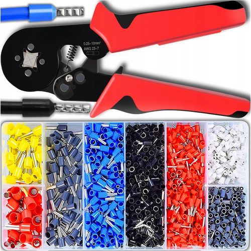 Zaciskarka jest wyposażona w organizer zawierający 1200 tulejek w 8 różnych rozmiarach, od 0,5 mm² do 10 mm². Każdy rozmiar ma inny kolor, co ułatwia identyfikację i organizację pracy.