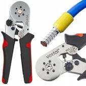 Te szczypce do zaciskania końcówek tulejkowych o modelu praskowym zapewniają wyjątkową dokładność dzięki precyzyjnemu sześciokątnemu profilowi zacisku, który minimalizuje ryzyko uszkodzeń kabli i tulejek. Obsługują tulejki o przekroju od 0,25 do 6 mm² dla pojedynczych i 0,5 do 2,5 mm² dla podwójnych, gwarantując niezawodne połączenia izolowanych i nieizolowanych końcówek w pracach amatorskich i profesjonalnych.