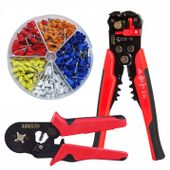 1✔️Kompletny i uniwersalny zestaw narzędzi do obróbki przewodów, obejmujący praskę automatyczną, ściągacz izolacji oraz bogate zestawy tulejek.