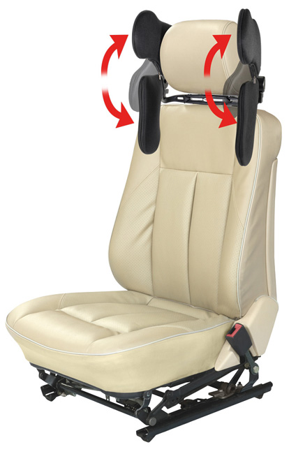 Boczne poduszki są wygodnie montowane na fabrycznych zagłówkach samochodu. Można regulować ich wysokość, by dopasować je do wzrostu zarówno dzieci, jak i dorosłych. Kiedy nie są potrzebne, wystarczy unieść je do góry. Regulowany zagłówek można zamontować na przednich i tylnych siedzeniach samochodu.