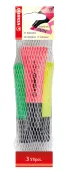 Zakreślacze w kształcie minimalistycznej tubki. Do postawienia na biurku i zabrania ze sobą do szkoły lub na uczelnię. Technologia Anti-Dry-Out sprawia, że pozostawiony bez skuwki nawet prze 4 godziny nie zasycha. Grubość linii 2-5 mm. Opakowanie w formie plastikowej siatki zawiera 3 sztuki w kolorach żółty, zielony, różowy.