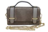 Wnętrze torebki: zamszowa torebka Barberinis wizytowa jest jednokomorowa, surowo wykończona, zapinana na dwa magnesy. Torebka posiada krótki uchwyt do ręki wykonany ze skóry licowej w dopasowanym kolorze, co dodaje jej wyrafinowanego charakteru. Subtelne złote elementy metalowe – klamry, łańcuszek oraz nity – wspaniale komponują się z całością, nadając torebce nutę luksusu. Z tyłu umieszczono ozdobne nity, które stanowią delikatny, ale efektowny akcent dekoracyjny. Dzięki złotemu łańcuszkowi (długość 126cm, wysokość 61cm) torebkę można nosić również na ramieniu lub przez ramię, co zwiększa jej funkcjonalność. Połączenie zamszu i gładkiej skóry licowej sprawia, że model ten łączy w sobie elegancję z nowoczesnym designem. Modna zamszowa torebka Barberinis wizytowa dostępna jest w kilku odcieniach brązu, beżu oraz w kolorze klasycznym czarnym.