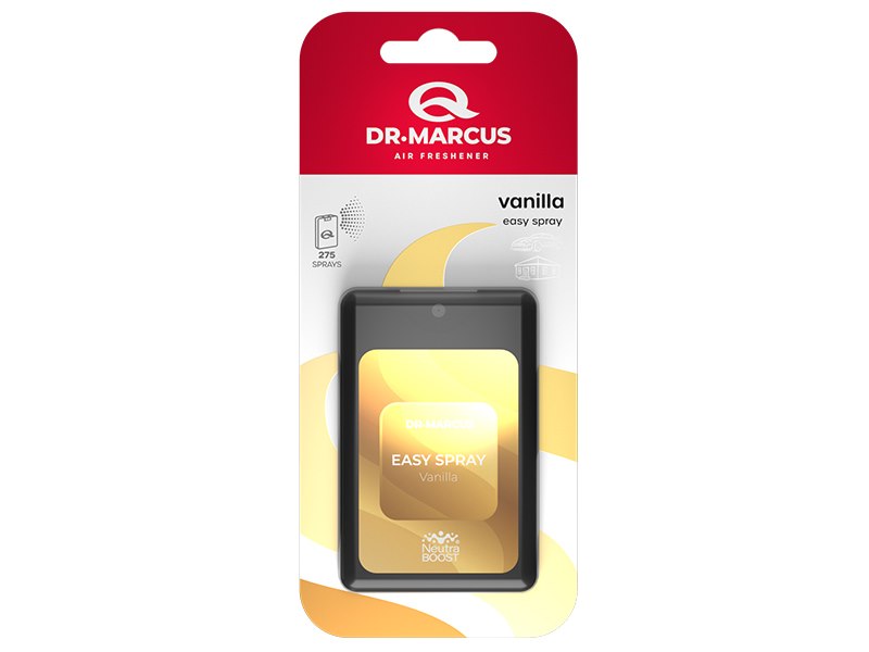 Easy Spray to mały odświeżacz samochodowy o wielkiej mocy. Kompaktowe, lekkie opakowanie bez problemu zmieści się w każdym schowku, dzięki czemu jest zawsze pod ręką.