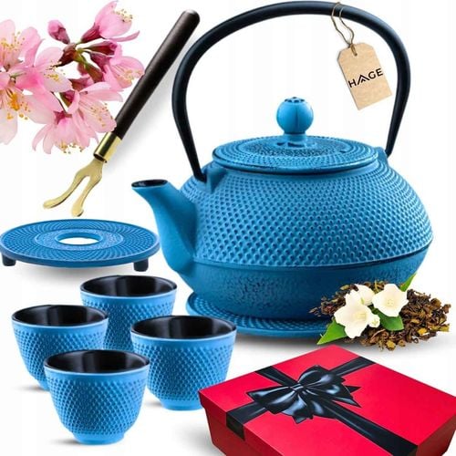 Żeliwo doskonale zatrzymuje ciepło, a emaliowana powłoka ułatwia utrzymanie czystości i poprawia estetykę. Czajnik wyposażony jest w ergonomiczny uchwyt oraz pokrywkę, a w zestawie znajdują się czarki, które umożliwiają komfortowe picie herbaty.