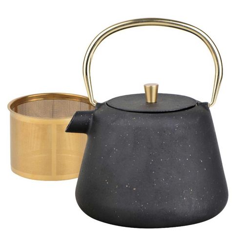 Ten elegancki żeliwny imbryk z zaparzaczem od KINGHoff to idealne połączenie funkcjonalności, trwałości i stylowego designu. Wykonany z wysokiej jakości żeliwa z emaliowanym wnętrzem, przez długi czas utrzymuje temperaturę naparu. Dzięki wygodnemu uchwytowi w złotym kolorze i profilowanemu dziobkowi, serwowanie herbaty staje się wyjątkowym rytuałem. Dołączony stalowy filtr umożliwia parzenie liściastej herbaty, ziół i mieszanek bez fusów.