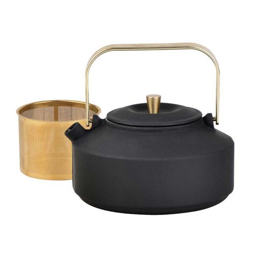 Żeliwny zaparzacz KINGHoff KH‑1935 łączy surową, matową czerń z wyrazistymi, złotymi akcentami, nadając codziennemu parzeniu herbaty elegancką oprawę. Masę żeliwa docenisz za długie utrzymywanie temperatury, a emaliowane wnętrze – za łatwe czyszczenie i neutralny smak naparu.