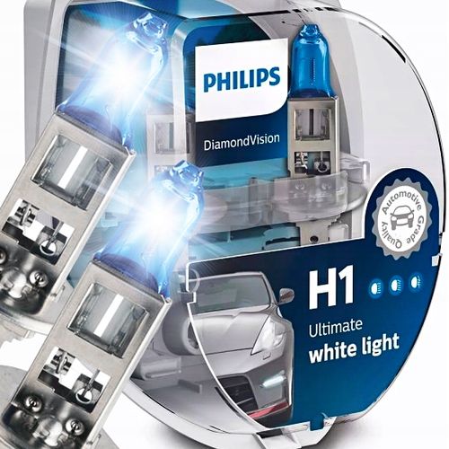 Opierając się na specjalnym, kompletnym niebieskim lakierze, DiamondVision oferuje najwyższe białe światło o mocy 5000K, nadając stylu Twoim reflektorom. Białe światło o maksymalnej wartości 5000K. Żarówki halogenowe Philips DiamondVision to wyjątkowe ulepszenie stylu dla Twojego samochodu z białym światłem. Specjalnie zaprojektowana niebieska powłoka sprawia, że DiamondVision wyróżnia Cię z tłumu.