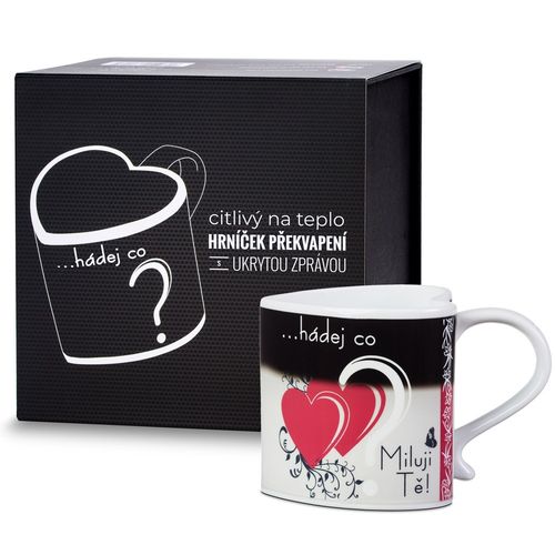 Na pierwszy rzut oka, kubek zdobi pytanie „Wiesz co?” umieszczone na czarnym tle. Kiedy jednak zdecydujesz się na rozgrzewający napój, czarna farba ustępuje miejsca urokliwym sercom oraz napisu „Kocham Cię”. To nie tylko kubek – to prawdziwy manifest miłości! Każdy łyk gorącego napoju przypomni osobie bliskiej, jak ważna jest w Twoim życiu.