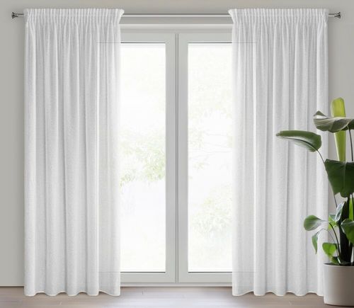 Ogromną zaletą zasłony AGIS jest jej uniwersalny biały kolor, który doskonale komponuje się z różnorodnymi stylami aranżacji. Bez względu na to, czy Twoje wnętrze jest nowoczesne, klasyczne czy rustykalne, ta zasłona doda mu lekkości i przestronności. Dzięki gramaturze 110 GSM możesz cieszyć się subtelnym efektem rozpraszania światła, co przyczyni się do stworzenia przytulnej atmosfery w Twoim domu.