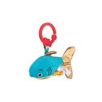 Ten koleżka tylko z pozoru wydaje się groźny! W rzeczywistości jest to łagodna rybka, która zabawnie popiskuje przy podrzucaniu. Rekin posiada złoty, szeleszczący ogon i wykonany jest z materiałów o zróżnicowanej fakturze, aby stymulować rozwój zmysłu dotyku maluszka. Praktyczna klamra ułatwi przymocowanie zabawki w wybranym miejscu.