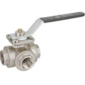 Zawór kulowy, trójdrożny, z pełnym przelotem DN15 G 1/2' żeński/żeński/żeński. Konstrukcja portu L. Uchwyt stalowy