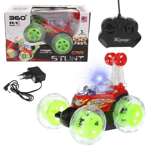 Zdalnie sterowany samochód kaskaderski został zbudowany tak by jeździć po podłodze oraz wykonywać niezwykle ewolucje. Kierowca sterujący samochodzikiem może wykonywać różne akrobacje, np. przewracać autko, jeździć tylko na dwóch kółkach, kręcić autkiem wokół własnej osi. Autko wykonuje obrót o 360 stopni. Pojazd się nie wywraca. Dzięki dodatkowym kółkom nad kokpitem pojazd po przewrotce może dalej się poruszać. Podczas zabawy dziecku towarzyszy wesoła melodyjka oraz kolorowe diody migające na samochodziku. Samochód sterowany jest za pomocą pilota. Dzięki jego prostej budowie, jazda samochodem będzie łatwa nawet dla początkującego kierowcy.