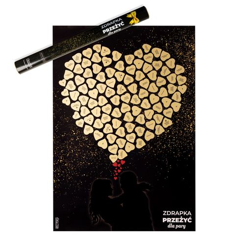 Zdrapka Przeżyć dla Pary to coś więcej niż przedmiot – to plakat do zdrapywania, który zawiera ponad 100 propozycji przeżyć, dzięki którym wspólne chwile staną się niezapomniane, a w związku nie będzie miejsca na nudę. Wystarczy wybrać, a następnie zdrapać pole, aby zacząć wspólną przygodę i podkręcić atmosferę odrobiną niepewności.