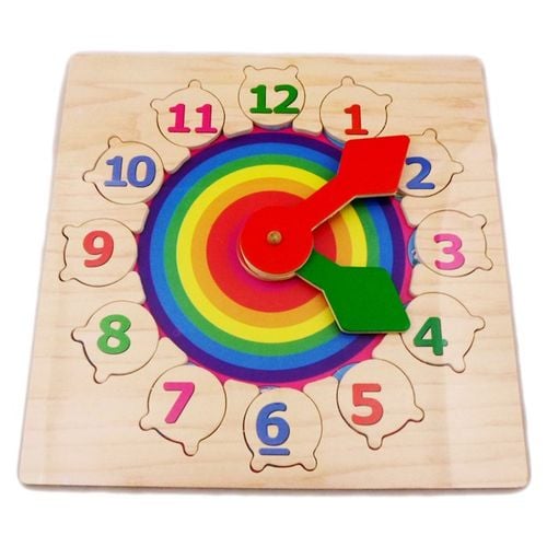 Drewniany kolorowy zegar, dzięki wyciąganym elementom pomoże rozwinąc zdolności manualne oraz wyobraźnię przestrzenną Twojego dziecka. Zabawka uczy również rozróżniania i nazywania kolorów i znajomości cyferek w zakresie od 1 do 12, rozpoznawania i nazywania ich, a także ich kolejności. Po opanowaniu tych umiejętności można przejść do nauki o czasie, zegar posiada ruchome duże wyraźne wskazówki do nauki odczytywania godziny z zegara tarczowego.