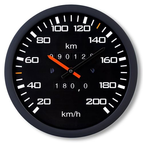 Oferowany Zegar Prędkościomierz został zaprojektowany z największą starannością – godziny na cyferblacie zastąpiono *podziałką prędkościomierza*, której skala sięga aż 200 km/h. Dodatkowo, na tarczy znajduje się nadrukowany licznik kilometrów, który zawsze będzie miał niewielki przebieg, co z pewnością rozbawi niejednego miłośnika czterech kółek.
