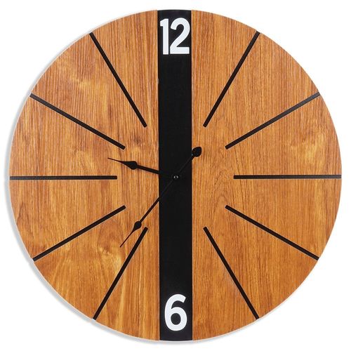 Zegar ścienny o średnicy 60 cm. Posiada modny design. Pięknie będzie prezentował się w każdym wnętrzu. Zegar może być świetnym pomysłem na prezent np. z okazji parapetówki lub urodzin. Utrzymany w modnym połączeniu drewna z kolorem czarnym. Zegar będzie stanowił efektowny element dekoracyjny w salonie, biurze bądź gabinecie. Z jego pomocą w łatwy sposób odczytamy godzinę. Wyprodukowano zgodnie z europejskimi standardami.