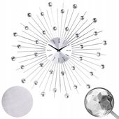 Ten wysokiej jakości zegar ścienny Cristal Moon o średnicy 50 cm zachwyca eleganckim designem glamour, gdzie tarcza ze szczotkowanego aluminium łączy się z promieniami ozdobionymi kryształkami, tworząc efekt rozświetlonego słońca. Precyzyjny mechanizm zapewnia niezawodne odmierzanie czasu, dodając wnętrzu luksusu i nowoczesnego blasku każdego dnia.