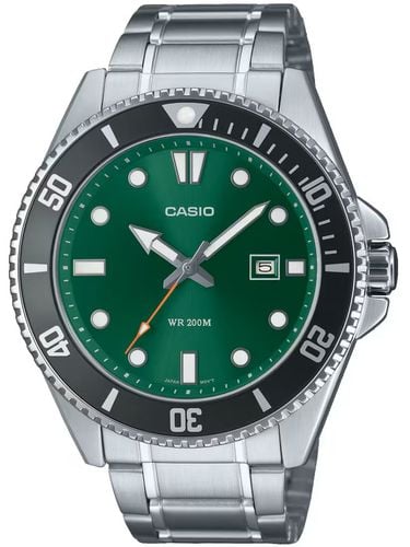 Zegarek Casio MDV-107D-3A2VEF to idealna propozycja dla mężczyzn ceniących sportowy styl i niezawodność. Jego solidna srebrna koperta z stali nierdzewnej zapewnia trwałość, a zielona tarcza dodaje charakteru i oryginalności.