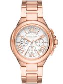 Zegarek damski Michael Kors Camille MK7271 przeznaczony jest dla kobiet które cienią sobie wyróżniające się dodatki. Koperta zegarka Camille MK7271 wykonana została ze stali szlachetnej w kolorze różowego złota. Tarcza w kolorze białym chroniona mineralnym szkiełkiem, na której znajduje się chronograf odmierzający czas. Zegarek Camille MK7271 został wyposażony w precyzyjny mechanizm kwarcowy.