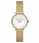 Zegarek damski Michael Kors MK4619 Pyper Mini zachwyca minimalistycznym designem w ponadczasowej złotej kolorystyce, wzbogaconym subtelnymi kryształkami na perłowej tarczy. Delikatna koperta o grubości zaledwie 7 mm z wygodną bransoletką mesh zapewnia komfort noszenia przez cały dzień, idealnie podkreślając stylizacje na każdą okazję.