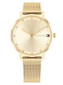 Zegarek Tommy Hilfiger 1782728 PIPPA to elegancki damski czasomierz zasilany niezawodnym kwarcowym mechanizmem. Koperta oraz bransoleta zostały wykonana ze stali szlachetnej, co gwarantuje jej wieloletnią odporność na zniszczenie w kolorze złotym. Całość uzupełnia delikatna i elegancka tarcza również w kolorze złotym zdobiona kryształkami.Klasa wodoszczelności czasomierza to WR30, co gwarantuje szczelność zegarka w przypadku drobnych zachlapań.