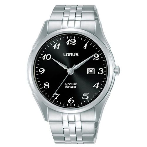 Klasyczny zegarek męski Lorus RH955NX9 na wygodnej stalowej bransolecie z zapięciem motylkowym. Wyposażony w dokładny mechanizm kwarcowy zasilany baterią z funkcją daty (dzień miesiąca umieszczony w okienku na godzinie 3). Dużym atutem jest szkło szafirowe, które jest odporne na zarysowania. Wnętrze okrągłej koperty zostało zabezpieczone klasą szczelności 5BAR (50M), która skutecznie zabezpiecza mechanizm przed zachlapaniem i wilgocią.