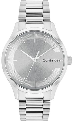 Model CALVIN KLEIN Iconic Brancelet to kwintesencja męskiego stylu – minimalistyczny, ale z wyrazistym charakterem. Tarcza przyciąga uwagę unikalną fakturą ułożoną w kształt litery „C”, co nie tylko nadaje jej nowoczesnego sznytu, ale i sprawia, że całość nabiera niepowtarzalnego stylu. Efekt promienistego szlifu, rozchodzący się z centralnego punktu, tworzy efekt świetlnego wachlarza, który nadaje głębi i energii, podkreślając dynamiczny charakter czasomierza. Chłodna, stalowa kolorystyka zegarka buduje spójną, elegancką kompozycję, idealną zarówno do garnituru, jak i casualowych stylizacji.