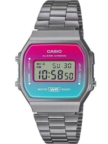 Zegarek Casio A168WERB-2ADF to połączenie klasycznej elegancji z nowoczesnym, miejskim stylem, który z powodzeniem może towarzyszyć Ci w codziennym życiu. Jego wyjątkowy wygląd przyciąga uwagę dzięki szarej kopercie, która wykonana jest z wysokiej jakości stali szlachetnej, łącząc solidność z subtelną elegancją. Tarcza zegarka, w odcieniach różu i turkusu, dodaje mu szczypty luksusu, a zarazem sprawia, że jest doskonale czytelny – cyfrowy wyświetlacz z wyraźnymi cyframi umożliwia szybki odczyt godziny, daty oraz innych funkcji, bez względu na warunki oświetleniowe.