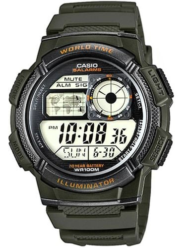 Model CASIO z Multi Time, światowym czasem, stoperem, alarmem x 5 i minutnikiem - a to wszystko 10 lat na jednej baterii. Casio AE-1000W to zegarek, który nadąża za Tobą - tarcza inspirowana kokpitem samolotu nadaje mu surowy, techniczny charakter, który podkreśla męski styl i dynamiczny tryb życia. Dzięki mapie świata i funkcji World Time możesz jednym rzutem oka sprawdzić czas w różnych strefach, co sprawia, że to idealny wybór dla podróżników i profesjonalistów pracujących na międzynarodową skalę. Wyświetlacz LC Analog sprawia, że zawsze masz pod ręką godzinę swojego miasta domowego, a wodoodporność do 100 metrów pozwala na swobodne użytkowanie zegarka w trudniejszych warunkach. To zegarek dla mężczyzn, którzy oczekują więcej – precyzji, trwałości i stylu.