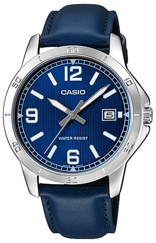 Wybierz sportową elegancję z klasycznym zegarkiem analogowym CASIO wyposażonym w minutową podziałkę na pierścieniu. Tarcza zegarka przyciąga wzrok intensywnym, głębokim odcieniem niebieskiego, wzbogaconym o subtelną strukturę pionowych prążków. Ten teksturalny efekt nie tylko dodaje elegancji, ale także sprawia, że światło odbija się od powierzchni w sposób dynamiczny, tworząc wrażenie głębi. Wyraziste indeksy, datownik i klasyczny skórzany pasek dopełniają całości, łącząc funkcjonalność z męskim stylem. Podziałka minutowa na bezelu dodaje dynamicznego charakteru i sprawdzi się w codziennym odmierzaniu czasu. Dodatkowym atutem jest wodoodporność (WR), dzięki której nie musisz martwić się o kontakt z deszczem czy wodą podczas codziennych czynności.