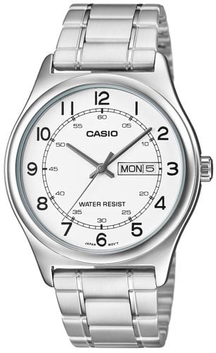 Casio MTP-V006 to propozycja dla tych, którzy cenią wyraźny przekaz i elegancję w najczystszej postaci. Zegarek ten łączy ponadczasową estetykę z codzienną funkcjonalnością – bez zbędnych dodatków, z naciskiem na prostotę i przejrzystość. Zastosowana 38-milimetrowa koperta subtelnie wpisuje się na nadgarstku, a granatowa tarcza z wyraźnymi arabskimi indeksami zapewnia błyskawiczny i wygodny odczyt godziny. Zegarek wyposażono w klasyczny układ trzech wskazówek – godzinowej, minutowej i sekundowej – oraz praktyczny datownik wskazujący dzień tygodnia i miesiąca, umieszczony na godzinie trzeciej. Stalowa bransoleta nadaje zegarkowi wyrafinowany charakter, który odnajduje się zarówno przy mankiecie koszuli, jak i przy swobodniejszym stroju – idealny do pracy, na spotkania, jak i na co dzień.