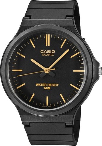 Męski model zegarka CASIO MW-240 łączący minimalizm, funkcjonalność i komfort w męskim wydaniu. Lekka konstrukcja zegarka (zaledwie 35g!) sprawia, że jest niemal niewyczuwalny na nadgarstku. Elastyczny, matowy pasek z żywicy dopasowuje się do ruchów, jest odporny na zużycie i gotowy na każdą sytuację – od spotkań po trening. Duże kontrastowe indeksy i wskazówki pozwalają sprawdzić godzinę w mgnieniu oka. Wytrzymałe szkiełko Resin Glass gwarantuje odporność na codzienne użytkowanie, a wodoodporność 5 BAR daje pewność, że zachlapania, deszcz czy szybki prysznic nie będą problemem.