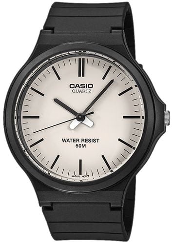 Męski model zegarka CASIO MW-240 łączący minimalizm, funkcjonalność i komfort w męskim wydaniu. Lekka konstrukcja zegarka (zaledwie 35g!) sprawia, że jest niemal niewyczuwalny na nadgarstku. Elastyczny, matowy pasek z żywicy dopasowuje się do ruchów, jest odporny na zużycie i gotowy na każdą sytuację – od spotkań po trening. Duże kontrastowe indeksy pozwalają sprawdzić godzinę w mgnieniu oka. Wytrzymałe szkiełko Resin Glass gwarantuje odporność na codzienne użytkowanie, a wodoodporność 5 BAR daje pewność, że zachlapania, deszcz czy szybki prysznic nie będą problemem.