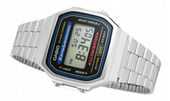 Ten zegarek Casio A168WA to kultowy model, który zachwyca swoją ponadczasową estetyką i niezawodną jakością. Minimalistyczna, a zarazem elegancka koperta z wysokiej jakości tworzywa sztucznego oraz stalowa bransoleta tworzą harmonijną całość, która podkreśli Twój styl niezależnie od okazji.