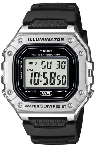 Casio W-218HM-7AVDF to esencja klasycznego stylu Casio w nowoczesnym, sportowym wydaniu: wyrazisty, prostokątny wyświetlacz LCD w solidnej kopercie, czytelny na pierwszy rzut oka, z subtelnymi akcentami, które dodają mu świeżości i uniwersalności. Zegarek został stworzony do codziennego tempa: wodoszczelność 50 m, podświetlenie LED dla pewnego odczytu po zmroku, 7-letnia bateria dla długiej niezawodności, a także praktyczny zestaw funkcji – stoper 1/100 s (do 60 min), alarm dzienny i sygnał pełnej godziny, automatyczny kalendarz oraz format 12/24 h. Lekki i wygodny, z szkiełkiem z tworzywa (Resin Glass) i wytrzymałym paskiem z żywicy, świetnie sprawdzi się zarówno na treningu, jak i w codziennych stylizacjach. Jeśli szukasz bezkompromisowej prostoty połączonej z legendarną trwałością Casio, W-218HM-7AVDF będzie strzałem w dziesiątkę.