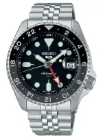 Seiko 5 Sports Automatic GMT SSK001K1 to męski zegarek, który doskonale łączy elegancki design z funkcjonalnością, idealny dla mężczyzn ceniących nowoczesne akcenty w klasycznym wydaniu. Zegarek napędzany jest automatycznym mechanizmem Seiko 4R34, który zapewnia niezawodność oraz 41-godzinną rezerwę chodu. Niebieska tarcza, chroniona utwardzanym szkłem mineralnym, nie tylko nadaje zegarkowi nowoczesny charakter, ale również zapewnia doskonałą czytelność. Tarcza zegarka Seiko SSK001K1 jest czytelna nawet w ciemności. Jest to możliwa za sprawą powłoki Lumibrite, którą pokryto wskazówki i indeksy godzinowe.
