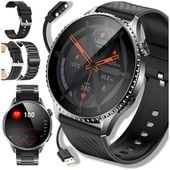 ✔️ Kompletny zestaw premium z trzema wymiennymi paskami (silikonowy, stalowa bransoleta, skórzany), dwiema folią ochronnymi i narzędziem do regulacji, podnoszący wygodę i trwałość.