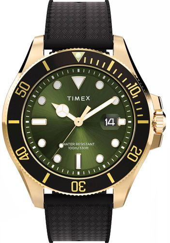 Męski Model TIMEX Harborside Coast prezentuje się znacznie powyżej swojej klasy cenowej, oferując wygląd i jakość godną luksusowych diverów. Masywna stalowa koperta o średnicy 44 mm, polerowane wykończenie i obrotowy bezel z czytelnymi oznaczeniami sprawiają, że zegarek natychmiast przywodzi na myśl sportowe modele premium. Centralnym punktem jest datownik z wypukłym szkłem powiększającym – detal, który dodaje zegarkowi klasy i nawiązuje do najlepszych wzorców w świecie czasomierzy. Zielona tarcza typu sunray i perforowany kauczukowy pasek zapewniają nie tylko świetny wygląd, ale i wygodę – także w wodzie, dzięki wodoszczelności do 100 m. Luminacja wskazówek i indeksów oraz osłona koronki to detale, które czynią ten zegarek funkcjonalnym i gotowym na każdą przygodę. Całość stanowi idealny wybór dla mężczyzny, który chce wyróżniać się nowoczesnym, prestiżowym dodatkiem.