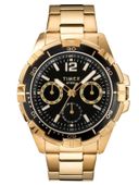 Sportowy zegarek męski TIMEX Multifunction TW2T50800. Model z mechanizmem kwarcowym. Koperta została wykonana ze stali szlachetnej pokrytej powłoką w kolorze złotym. Bransoleta została wykonana ze stali szlachetnej pokrytej powłoką w kolorze złotym. Czarną tarczę chroni szkło mineralne. Średnica koperty wynosi 45mm natomiast grubość 12mm. Klasa wodoszczelności tego modelu wynosi 3ATM.