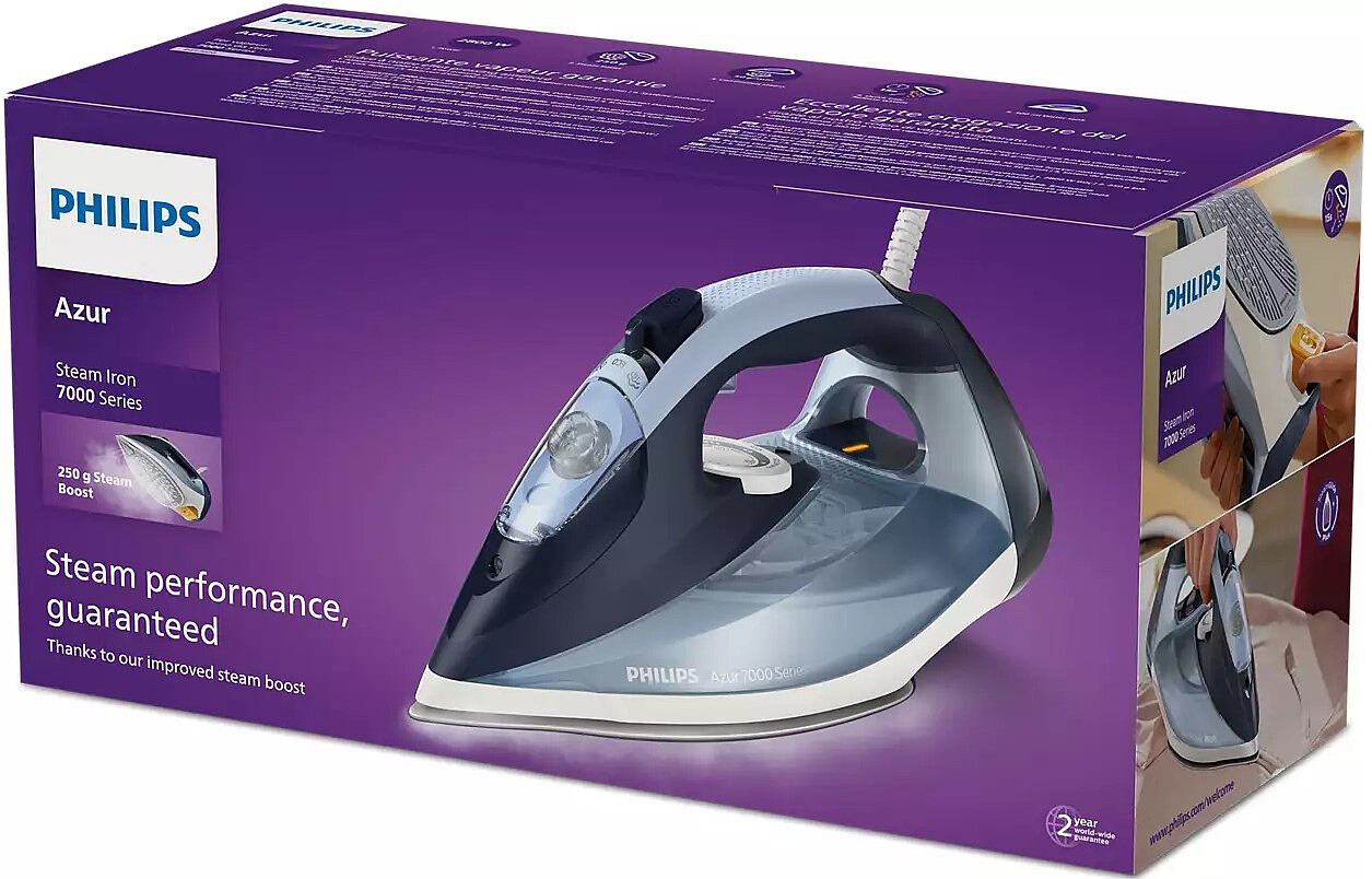 Żelazko zostało wyposażone w stopę SteamGlide Plus, która gwarantuje bardzo dobry poślizg na wszystkich ubraniach. Bardzo wysoka moc sprawi, że ten model nagrzeje się w ekspresowym tempie, dzięki czemu niemal od razu będziesz mógł rozpocząć prasowanie ubrań. Ten model dobrze nadaje się do prasowania z używaniem pary. Wytwarza odpowiednio dużo pary wodnej, żeby skutecznie rozprostować silne zagniecenia i grubsze tkaniny. Dodatkowy wyrzut pary to użyteczna funkcja, która umożliwia wytwarzanie mocnego chwilowego wyrzutu pary w czasie prasowania. Para głęboko wnika w strukturę tkaniny, dzięki czemu ułatwia rozprasowywanie zagnieceń.