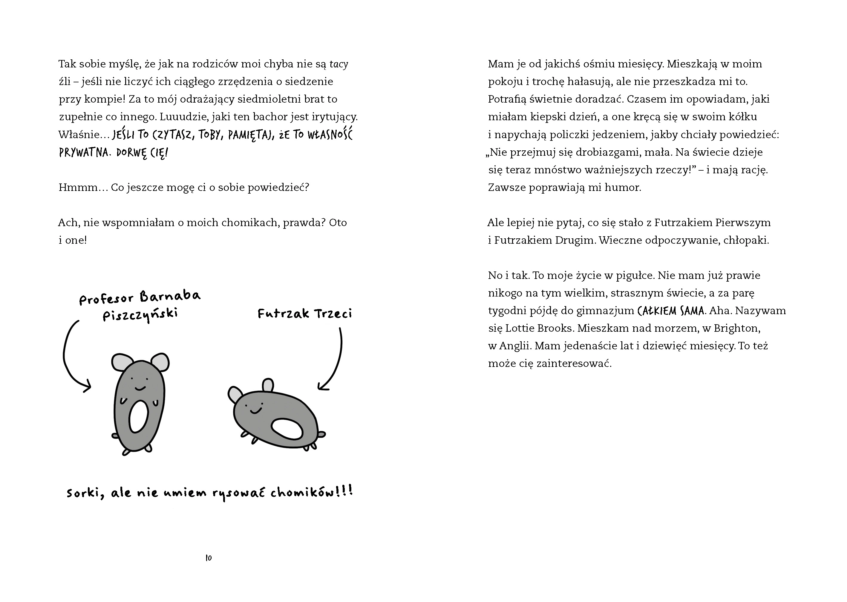 Lottie ma 11 lat i 9 miesięcy i jej życie oficjalnie się skończyło. Najlepsza przyjaciółka wyjechała, Instagram pokazuje tylko 13 obserwatorów, a Lottie właśnie odkryła, że nadal jest zbyt płaska, by nosić stanik z miseczką A! W dodatku rodzice próbują ją pocieszyć happy mealem! TOTALNY OBCIACH. Czy trzeba dodawać, że co drugi dzień jest NAJGORSZYM DNIEM jej życia, a włosy nie układają się w czarujące fale? Wprawdzie mama uważa, że Lottie jest śliczna, ale co ona tam wie! Mówiłaby tak, nawet gdyby jej córka wyglądała jak ziemniak. A przecież większość ludzi nie chce przyjaźnić się z ziemniakami! Na szczęście w życiu dziewczyny pojawia się SEKRETNY PAMIĘTNIK… PIERWSZY TOM SUPERŚMIESZNEJ, BESTSELLEROWEJ SERII, która w dniu premiery trafiła na pierwsze miejsce toplisty Amazona i do tej pory tylko w samej Anglii sprzedała się w ponad 50 tysiącach egzemplarzy!