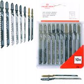 Wysokiej jakości zestaw brzeszczotów do cięcia drewna i tworzyw sztucznych przeznaczonych do użytkowania z wyrzynarkami z uchwytem typu T. Brzeszczoty cechują się wysoką jakością użytych do ich produkcji materiałów oraz precyzyjnym wykonaniem. Dzięki czemu doskonale nadają się zarówno do prac profesjonalnych jak i amatorskich. Ważne cechy: