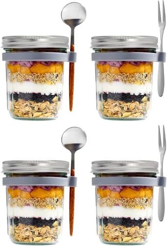 Zestaw czterech słoików śniadaniowych wyposażonych w szczelne pokrywki oraz komplet sztućców to funkcjonalne rozwiązanie dla osób planujących posiłki z wyprzedzeniem. Każdy szklany pojemnik został zaprojektowany z myślą o przechowywaniu i transportowaniu różnorodnych dań, takich jak owsianka nocna, jogurt z dodatkami, pudding chia, świeże sałatki czy owoce. Dzięki dołączonym akcesoriom spożywanie przygotowanych potraw w pracy, szkole lub podczas wyjazdu staje się proste i komfortowe. Słoiki umożliwiają warstwowe układanie składników, co sprzyja zachowaniu ich walorów smakowych i estetycznych. Jest to praktyczny wybór dla osób dbających o regularne odżywianie, które poszukują trwałych i wielorazowych akcesoriów kuchennych ułatwiających codzienną organizację zdrowej diety oraz oszczędność czasu podczas porannych przygotowań.