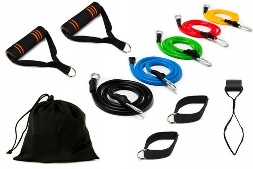 Oprócz samych ekspanderów, w zestawie znajdują się również uchwyty na nogi, zaczep montażowy do drzwi oraz worek transportowy. Dzięki temu masz wszystko, co niezbędne do różnorodnych ćwiczeń siłowych, rozciągających i rehabilitacyjnych w jednym, kompaktowym opakowaniu.