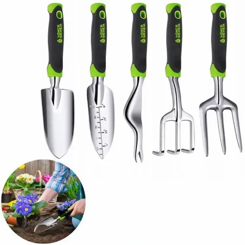 1✔️ZESTAW WSZYSTKO W JEDNYM- składający się z 5 różnorodnych i niezbędnych narzędzi umożliwiających szeroki zakres prac ogrodniczych.