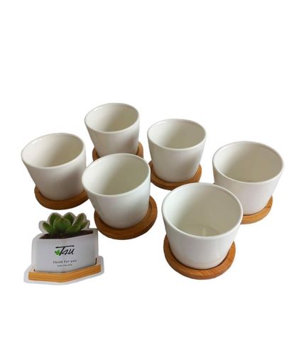 Ceramiczne doniczki na sukulenty kaktusy z podstawką bambusową