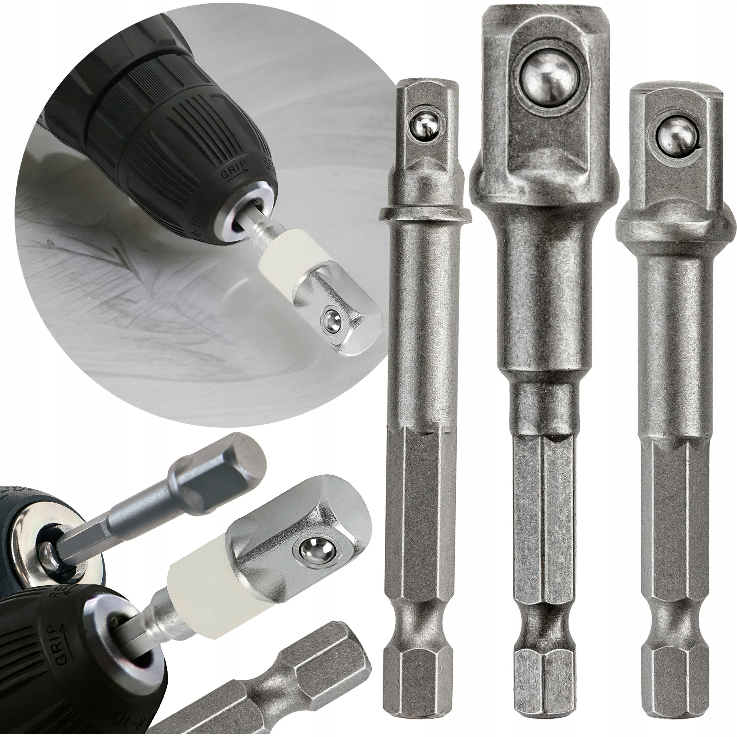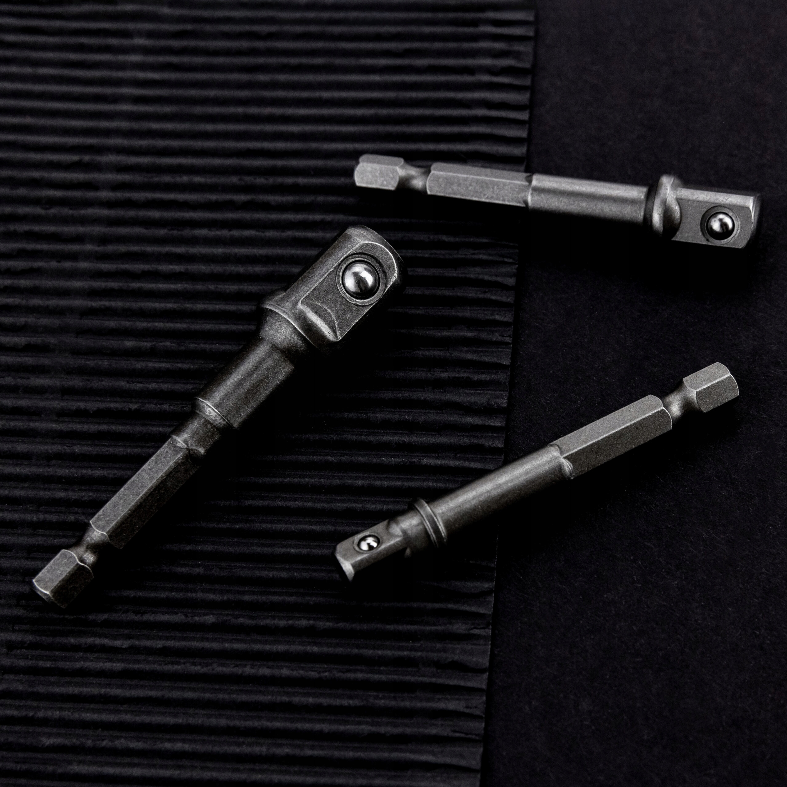 Adaptery HEX są niezbędnym urządzeniem w warsztatach samochodowych, hydraulicznych lub serwisach instalacyjnych, ale również wszędzie tam, gdzie występuje potrzeba częstej zmiany narzędzi. W zestawie znajdują się trzy adaptery o średnicach: 1/2’’, 3/8’’ oraz 1/4’’. Produkty są wykonane z mocnej stali, dzięki czemu zachowują trwałość przy wielokrotnym montażu i demontażu. Adaptery pozwalają na użycie nasadek z napędem kwadratowym w urządzeniach z mocowaniem HEX. Każdy z nich posiada na końcu zatrzask kulkowy, który zapewnia stabilne mocowanie i unieruchomienie nasadki. Produkt kompatybilny jest z większością wkrętarek.