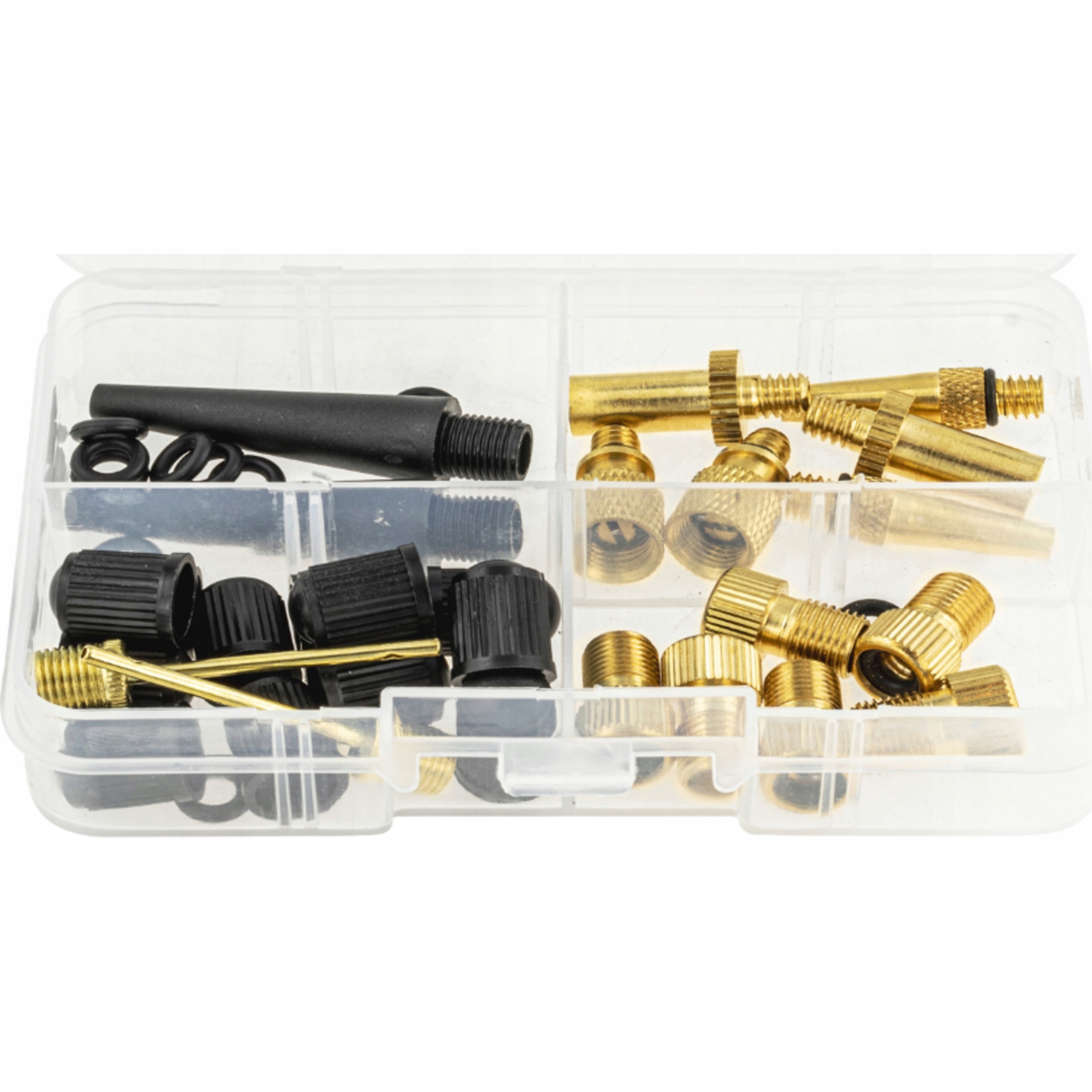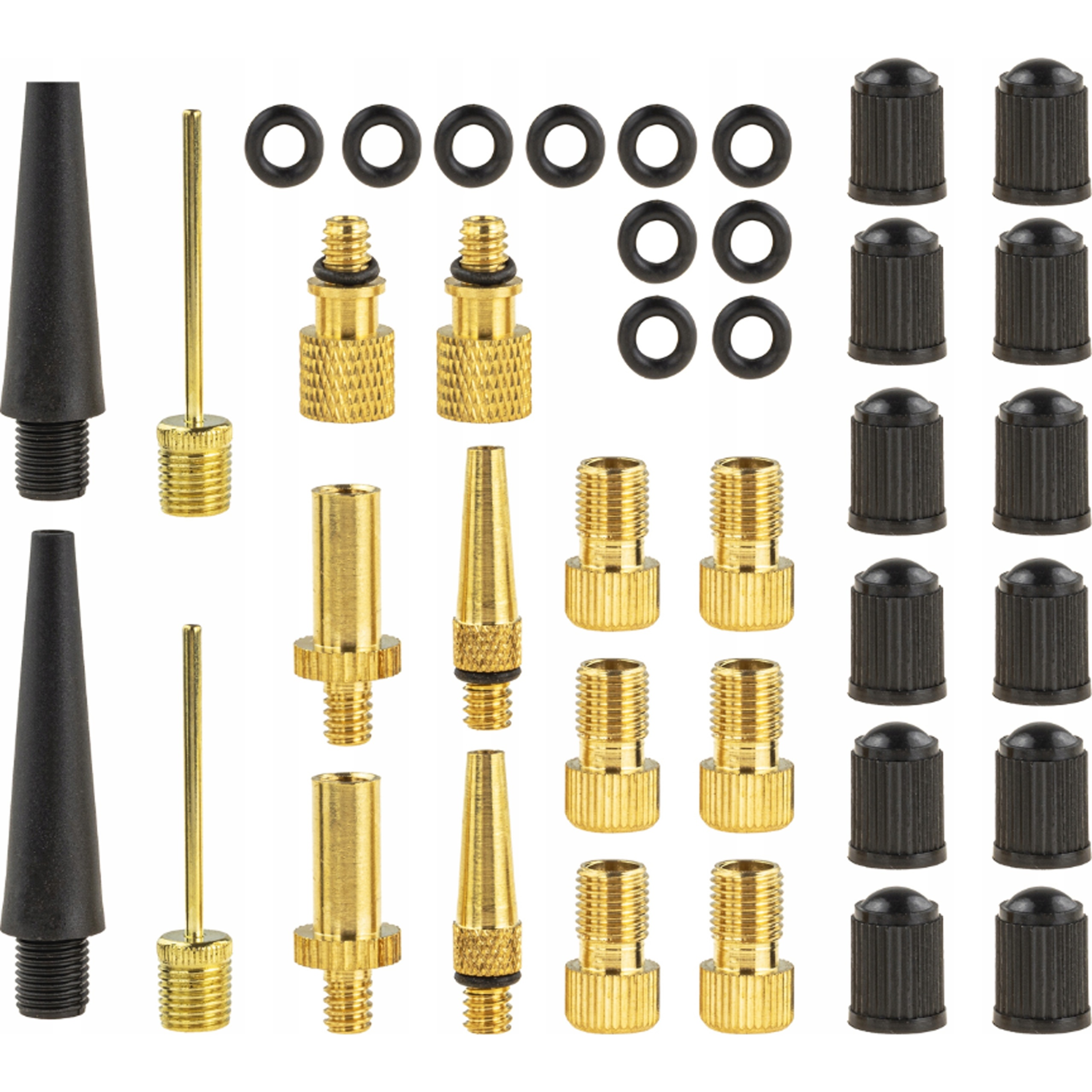 Zestaw 36 adapterów i końcówek Falon-Tech – uniwersalne akcesorium do pompowania rowerów, piłek i artykułów dmuchanych.