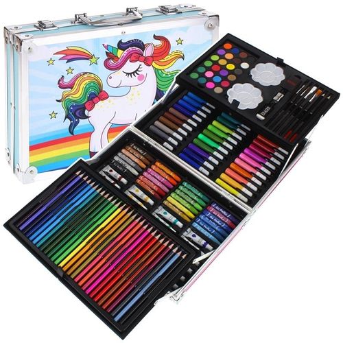Zestaw artystyczny dla dzieci, który świetnie sprawdzi się jako prezent na każdą okazję. Rysowanie i malowanie wpływa na prawidłowy rozwoju małej motoryki dziecka. Pobudza kreatywność, ale też ćwiczy mózg dziecka i przygotowuje go do nauki pisania. Zestaw zawiera wszystkie niezbędne elementy do prac malarskich takich jak kredki, pisaki, pastele czy farby. Każdy element zestawu ma swoje miejsce, dzięki czemu łatwo zachować porządek, a wszystkie przybory będą w jednym miejscu na wyciągnięcie ręki.